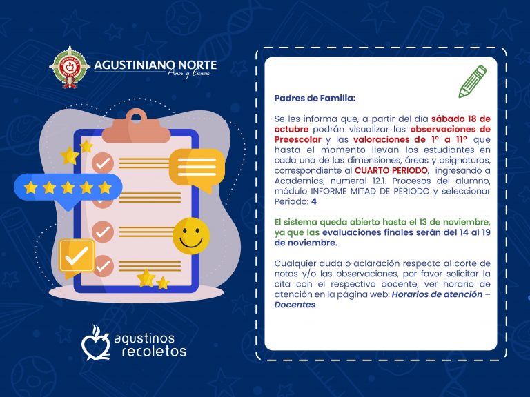 Padres de familia, cordial saludo Se les informa que, a partir del sábado 18 de octubre desde las 7:00 a.m., podrán visualizar las observaciones de Preescolar y…